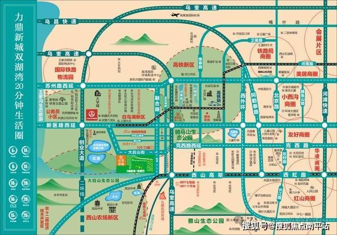 力鼎新城位于乌鲁木齐经开区大白山街1598号,紧邻高铁新区,高铁新区是乌鲁木齐市“三区六组团”建设的重要组成部分,