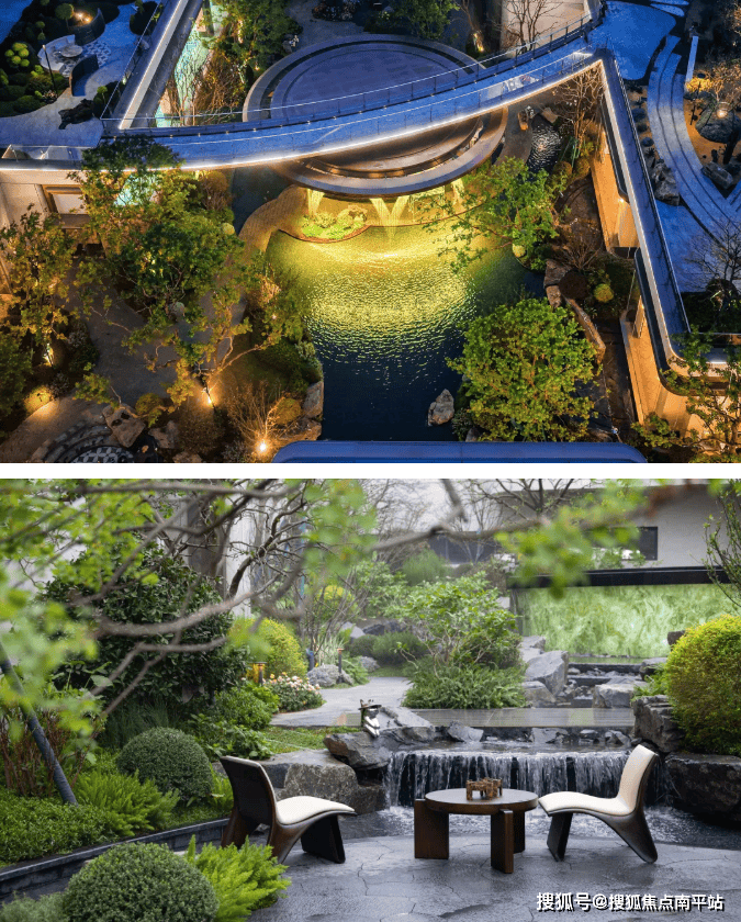 以湖湘“山水洲城”为灵感,打造长沙首个“垂直山水庭院”。超4800㎡园林中,下沉庭院面积逾2000㎡,拥有百米超长景观视野,形成“上可观瀑、中可漫步、下可栖居”的三维游历体验。中央设置由16片花瓣组成的圆形剧场,伴以3D流瀑水景,构建“一轴C环八景”的景观体系,融合四大主题园区与全龄功能场景,实现自然与生活的无界交融。