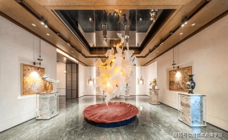 艺术级城市会客厅以11米通高全玻璃幕墙(单块面积17㎡、成本达5万元)构建全长沙独有的透明视觉界面。两层挑空设计与立体庭院对景,形成远中近多层次空间。负一层艺术走廊融合湘绣、瓷雕等湖湘元素,构筑兼具酒廊、私宴功能的泛会所空间。