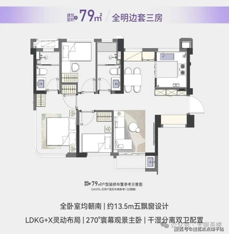 高层约79平,厦门同级最强迭代3房2卫户型!