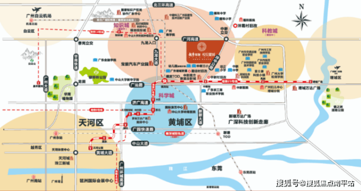 交通:1站黄埔(镇龙站),3站天河(快线天河智慧城);高速就在家门口,40分钟直达天河,小区设置地铁21号线中新站、天河宏发广场(3号线石牌桥站)接驳巴士,广河高速、广汕公路,新白广城轨(镇龙站)、多路公交接驳线
