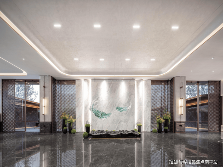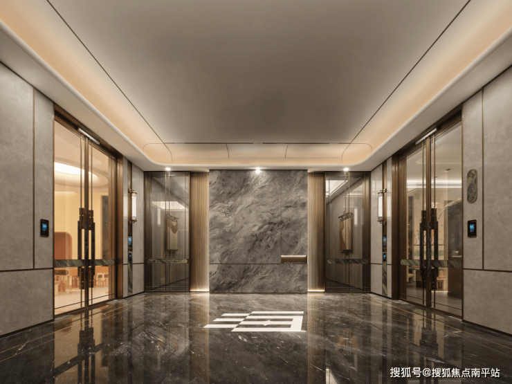 归家动线从“酒店式”的归家大堂搭配后场下沉庭院静水映树;到地下大堂“超大光厅”以开阔的视野与明亮的空间,消弭了地下空间的压抑感;再到首层大堂地面石材拼花,搭配简约大气的装修,满满“高端酒店”归家仪式感,让每一次出入,都成为一场视觉与心灵的奢华洗礼。