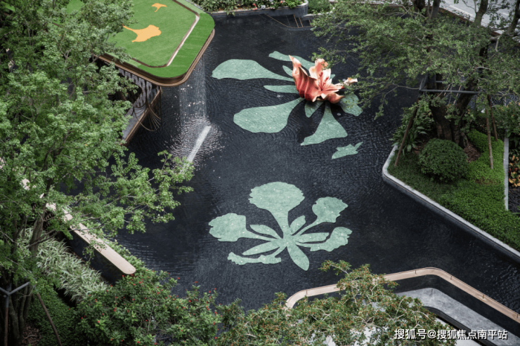 品质落地离不开用心管控,精心挑选的苗木造型,提升整体景观价值;丰富的苗木品种提供观花、赏叶、闻香、科普的乐趣;堆坡造景眼光独特,植物搭配层次丰富、季相分明;地面铺装丰富多样,材料图案选用反复推敲,以精工细作,让自然、艺术与生活于此和谐共鸣。