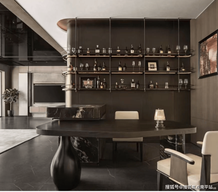 我们更匠心规划围坐品酒区,吧台台面与品酒桌高低错落,既保留单人独酌的静谧奢享,亦兼顾好友围坐畅谈的温情惬意。闲暇之时,邀三五知己执杯小酌,在酒香氤氲中畅谈生活与理想,让圈层情谊在奢雅氛围中悄然沉淀。围坐式品酒区旁,独立茶室隐匿一隅,隔绝外界尘嚣,以静谧雅致的氛围承载独处沉思与知己茶叙的美好。煮一壶清茶,静听茶语流转。