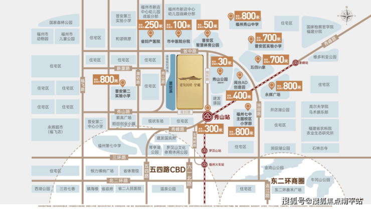 交通方面:家门口约300米是地铁1号线秀山站,2站至福州火车站、5站到省府核心的屏山站,6站直达东街口商圈;1号线有7个换乘站,接驳6条地铁网络,可快速通达全城。项目毗邻秀山路、秀峰路等城市动脉,已开通有十多条公交线路,串联榕城各地,无论是公共交通,还是自驾出行,都高效便捷。