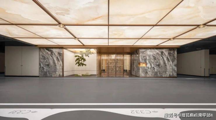 地库入口的设计同样暗藏巧思:平缓的坡度兼顾行车舒适度,金属铝板天花与天然岩板墙面交相辉映,不锈钢勾边勾勒出雅奢格调,从入库前便与常规地库的昏暗压抑划清界限,为地下的奢境体验埋下伏笔。
