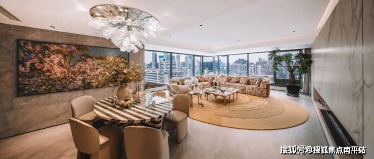 大平层设计:项目全部为 238㎡的四房三卫户型,五开间朝南,得房率高达 89%。客餐厅一体化设计,面积达到 94㎡,搭配约 14 米长的全景落地窗户,270° 采光视野极佳,可俯瞰宝岛公园美景。