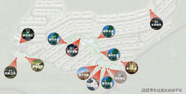 与操刀万科17英里、龙湖舜山府等标杆项目的道远景观主创团队协作,借鉴六善酒店、巴厘岛等高奢度假酒店景观巧思,以“居山观海,极致视野”的设计理念,将“种子书屋、金门长廊、智幻营地、荣融之木、水岸观风、点晶山水、馨悦步道、壹亩邻里”等中信八景融入其中,打造“一主两次轴线,七大景观核心区,八大自然场景”造景格局,诠释隐林山涧的隐奢秘境。