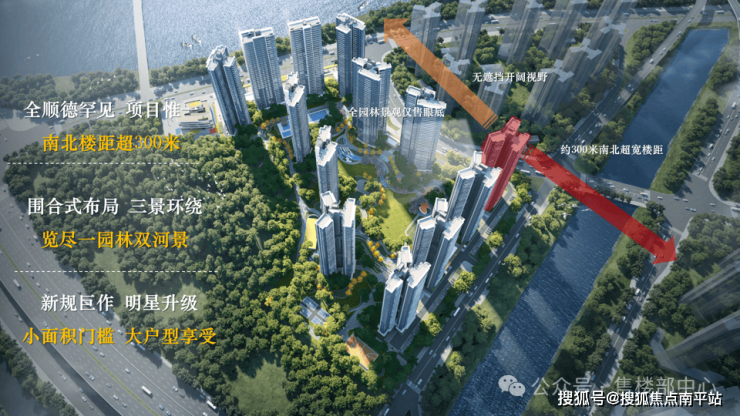依托环境匠心独造,实现IMAX270°全景规划,户户无遮挡,席席强采光。全顺德罕见约260米南北楼间距,创新延展楼型南北通透。