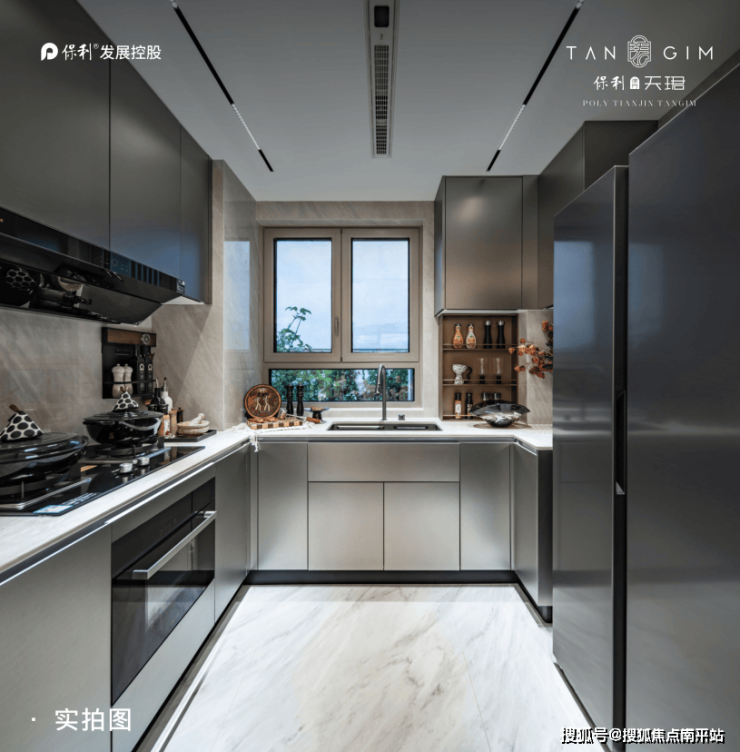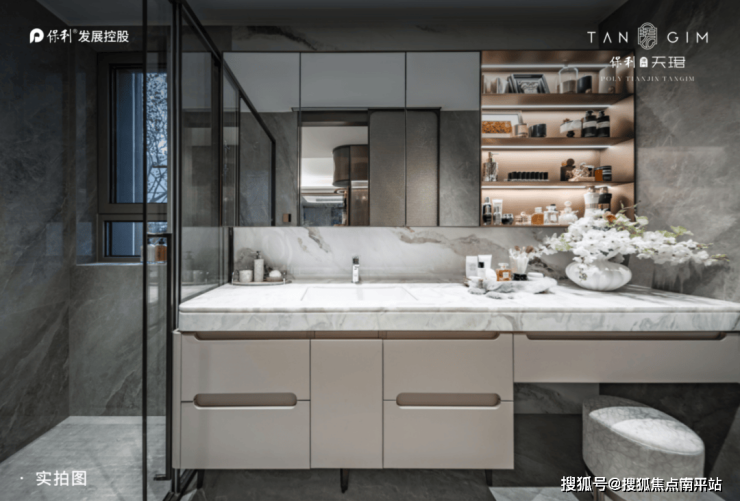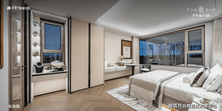 特意翻了翻镜柜,是防潮耐磨的铝合金材质,有吹风机与电动牙刷美容仪的充足供电口。橱柜面层是金属质感,易清洁防污,全屋集成的智能化,常规精装房在这些细节上是板材、预留以节约成本。但保利的精装交付,连细节全部考虑周全了。如果换房存在不确定性,估计大多数学区兼顾改善的客户会说服自己冲一把这个户型。