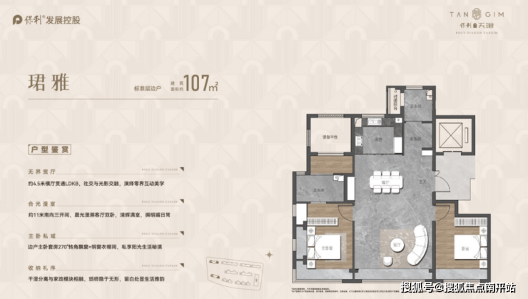 起步107㎡户型,把纯粹价格敏感的书包客户挡在了门外,也无形中拉高了项目改善的门槛,户型尺度又是可进可退的选择,正中学区兼顾改善客户的下怀。