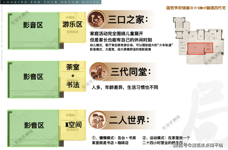 高端改善:四代宅有高得房率,过去买180㎡的人,现在买139㎡就已经满足了,约等于总价变相打了约7折;