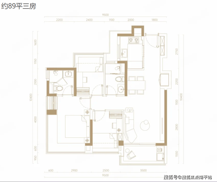 绿城桂语旗峰将 270°无柱飘窗 运用到约89平三房,把首置产品做出豪宅配置;
