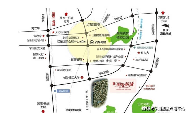 城市配套:友阿奥特莱斯、长沙理工大学、金海中学、红星商圈、汽车南站、湘雅四医院