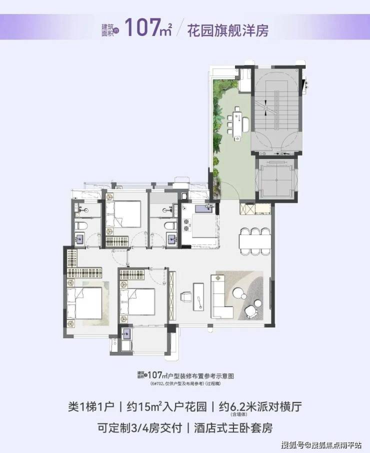 高得房:高层85-89%、洋房99-101%最高可到113%。洋房私梯入户,户户超14㎡空中花园,2-4F双空中花园。