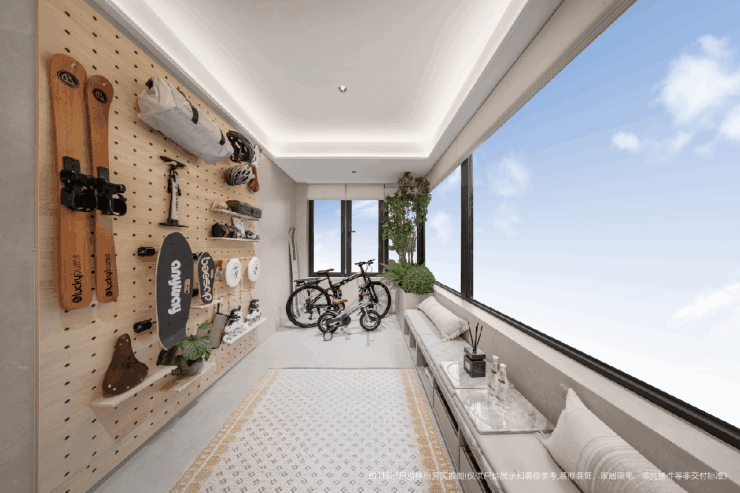 约15-16平的独立入户光厅,长条X明亮空间,实测做个【玄关花园区】绰绰有余,沏茶棋牌、养花种草、艺术展览、party欢聚各种墅级生活场景就来了,作为娱乐间、儿童游乐间、户外工作室也是非常实用。