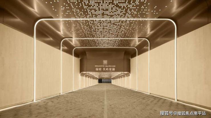 再比如, 绿城·凤屿观澜在 地库坡道天花板设计中,以造价高昂的定制镶嵌闪烁星光灯珠形成星空穹顶,辅以 高密拼接的 香槟金色铝板 ,缝隙小而规整。