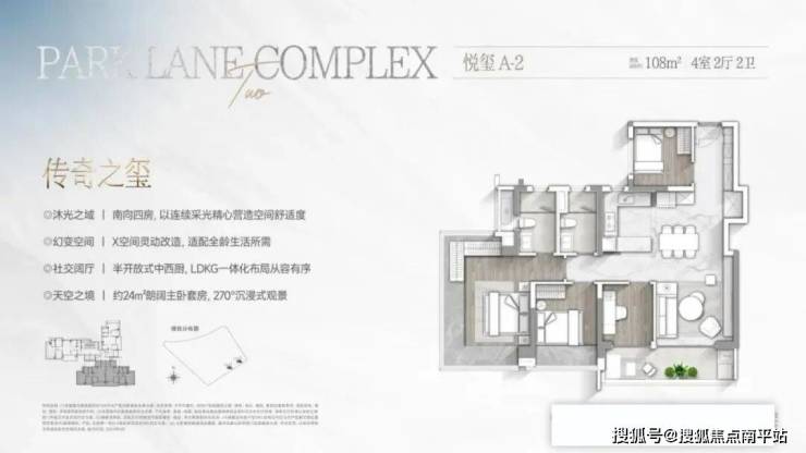 面积段:108-300㎡全南向四房,最小108㎡做到四房,实用率95%;