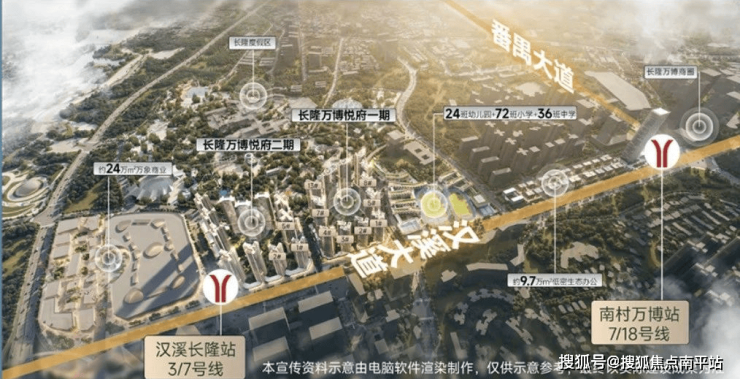 一期距离地铁3/7号线汉溪长隆站,实际距离约500米左右,步行约8分钟,距离地铁18号线南村万博站约1.2公里