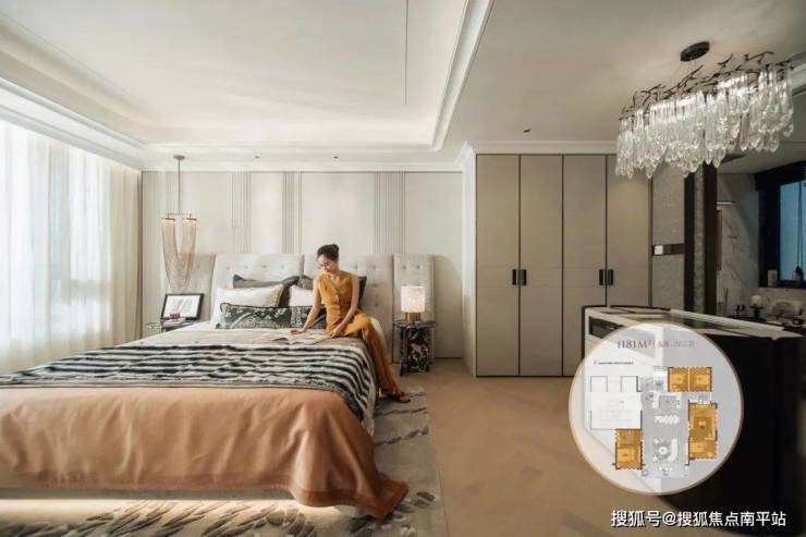 建面约181㎡产品打造出“类三套卧”的起居格局。约29㎡全景主卧套房,对标星级酒店总统套房的空间格局,南向全景落地窗/飘窗,步入式衣帽间,独立卫浴空间,一气呵成的洄游动线设计,让主人家晨起梳妆、沐浴更衣优雅流畅。