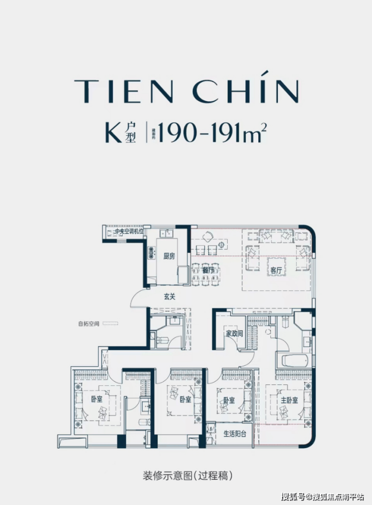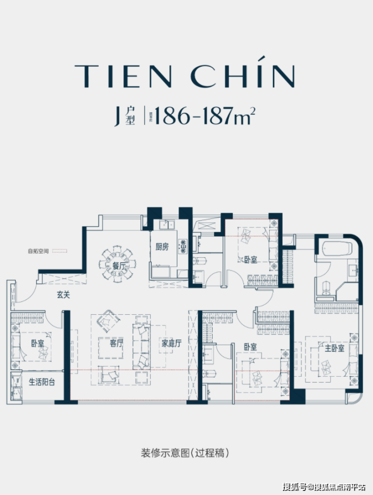 主力户型:110-112㎡、123-125㎡、144-150㎡、163㎡、186-189㎡、189-192㎡、199㎡七种户型