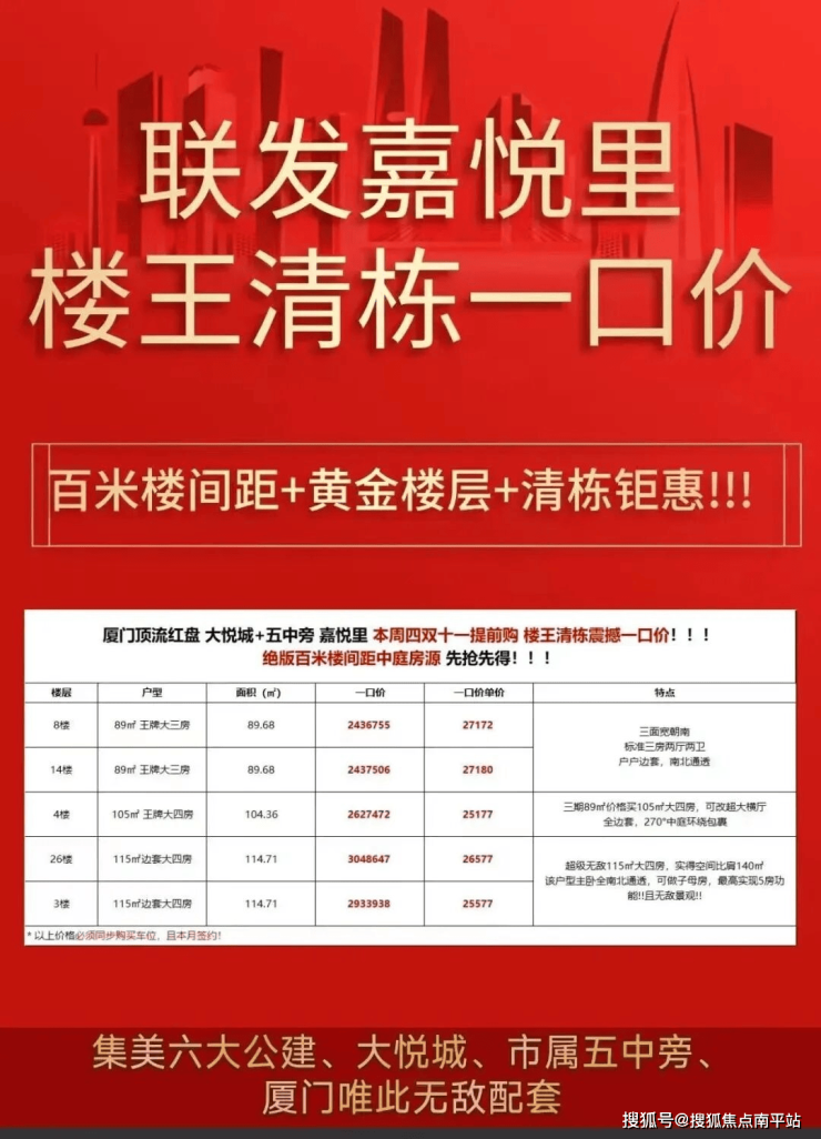集美新城大悦城旁的联发嘉悦里3期1#楼,成交单价预估2.88万元/平起!!