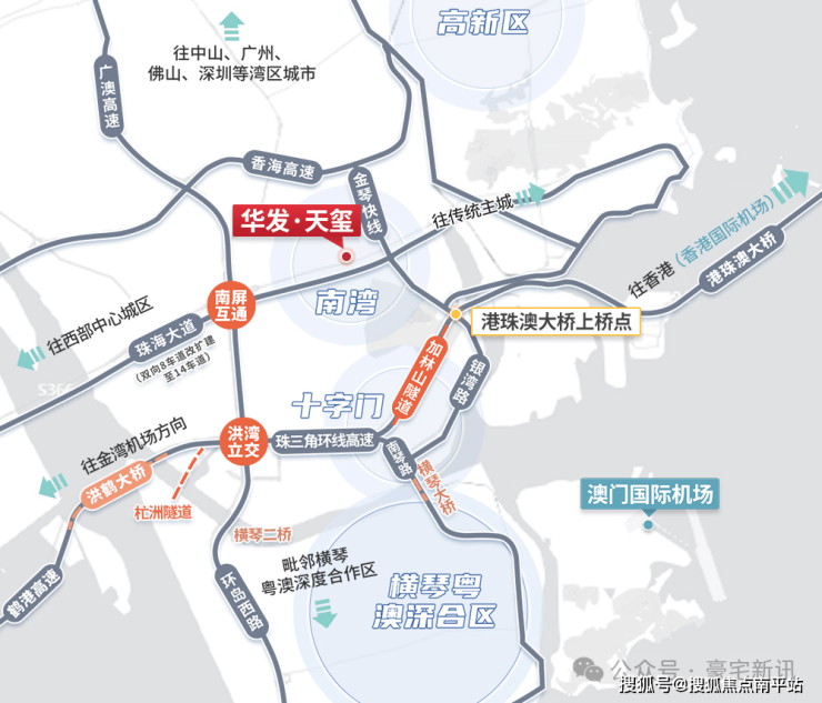 珠海交通大动脉,金琴快线-南湾大道串联高新区、十字门与横琴,实现全城快速通勤;凭借 “轨道+大桥+口岸”的立体路网, 贯通珠海辐射湾区。