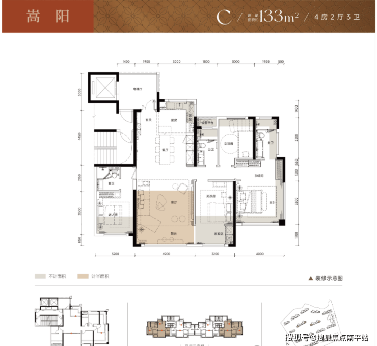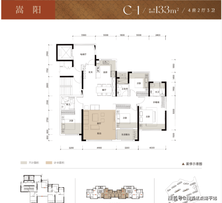 1. 所处位置:133㎡的边户户型为7、10、11号栋,均为32层高层;