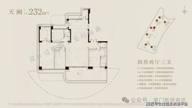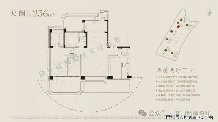 厦门首个60米悬挑海无边际泳池+25米室内恒温泳池,辅以休闲吧、茶室、观景平台,等共计2000平空中会所。首发七衡系统科技配置(衡温、衡湿、衡氧、衡净、衡洁、衡静、衡光)实现低碳环保的居住品质。