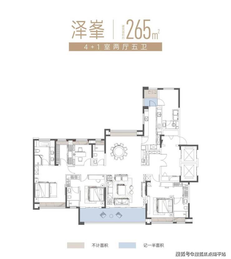 我们先看 160㎡、180㎡户型,标配大四房,四开间朝南+南北双阳台,通风采光舒适,虽然是老规产品,但赠送了飘窗、设备平台,其中阳台算一半面积,整体的得房都相当高!