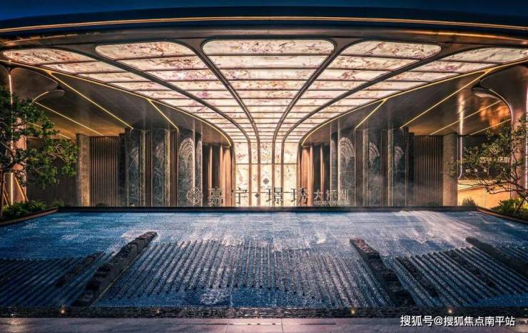 地面采用东方瑰宝级石材铺设,两侧六片精雕,特选8棵油橄榄,以异域风情地中海美学,铺陈归家首道礼序。