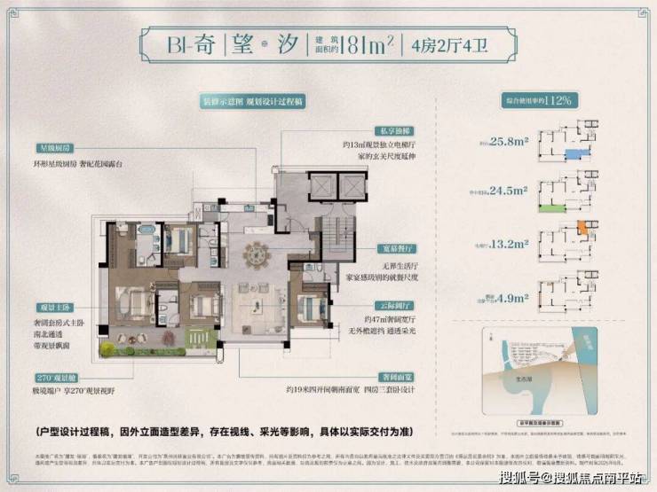 ▍超高得房率:约107%综合使用效率,可比肩传统180㎡户型