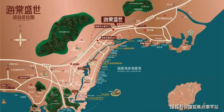 交通路网:位于国家海岸海棠湾,土福出口,交通四通八达,可无缝接驳东线高速。距离三亚市区35公里,距离亚龙湾动车站27公里,海棠湾动车站在建,距离解放军301医院16公里。