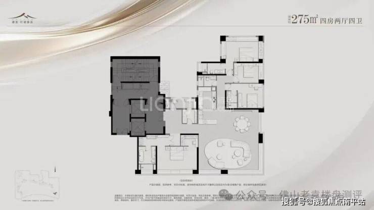 275㎡四房两厅四卫:头排江景户型,双主卧套房设计,全明房无暗角,空间尺度拉满