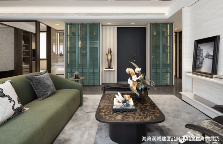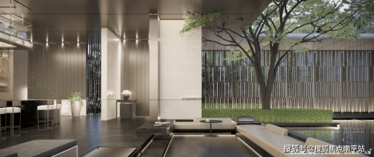 不同于千篇一律的住宅楼,海湾润城的社区规划藏着设计师的巧思:首层局部米白色仿石砖,外墙大面浅灰色和深灰色涂料,仿佛孩童随手勾勒的简笔画。约140平米的方舟酒廊以下沉式卡座设计,营造围炉夜话的温馨氛围。穿过风雨连廊后的森光水院,将自然元素引入室内,臻选蓝钻仿石砖切割自然起伏的涟漪纹理,四周移栽三株冬青树进行呼应,构建"水境入林"的雅致意境。