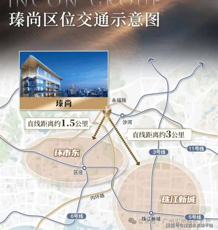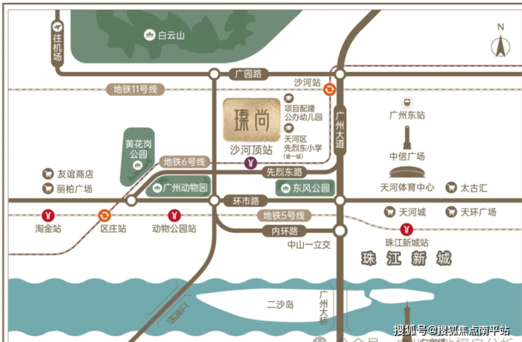 三地铁交织(5/6/11号线),距离6号线沙河顶站B出口约500米,1站至沙河站换乘广州大环线11号线,2站至区庄站换乘东西大动脉5号线。3站淘金,6站北京路、珠江新城。