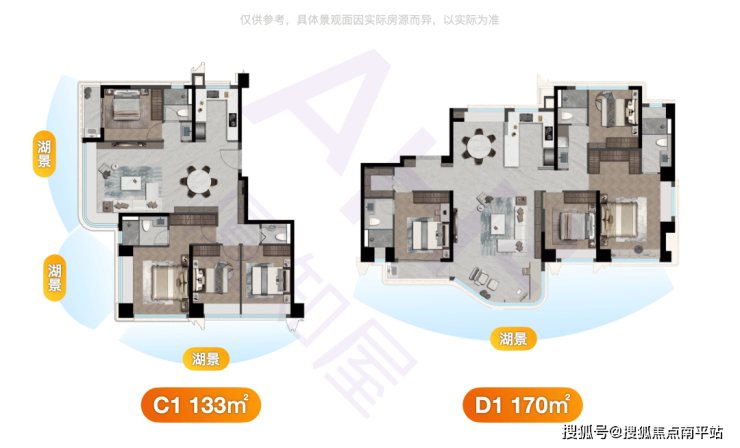 133㎡的C1户型,岛内最稀缺,最小双面瞰湖神户型,客厅、卧室、主卧,都有景观!主卧“两面”湖景,躺在床上,就可以看湖,这体验简直美滋滋;