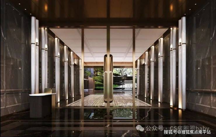 三重臻装入户门楼:地下门厅、首层门厅、私人电梯厅,一进一礼,敬呈归家至高礼序。