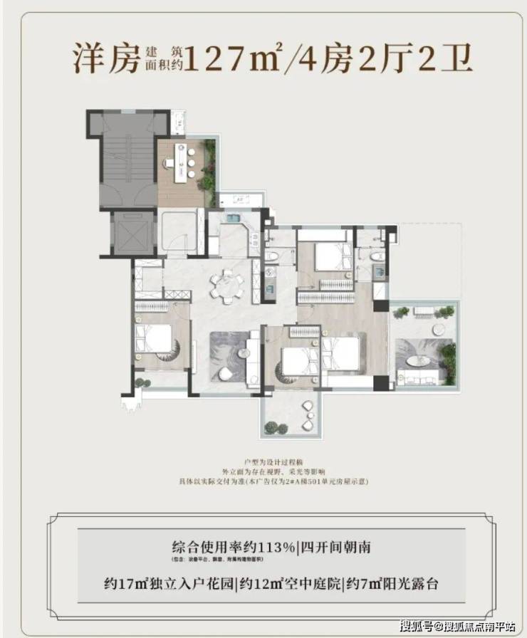 洋房127平户型,17平入户花园,12平露台,7平阳台