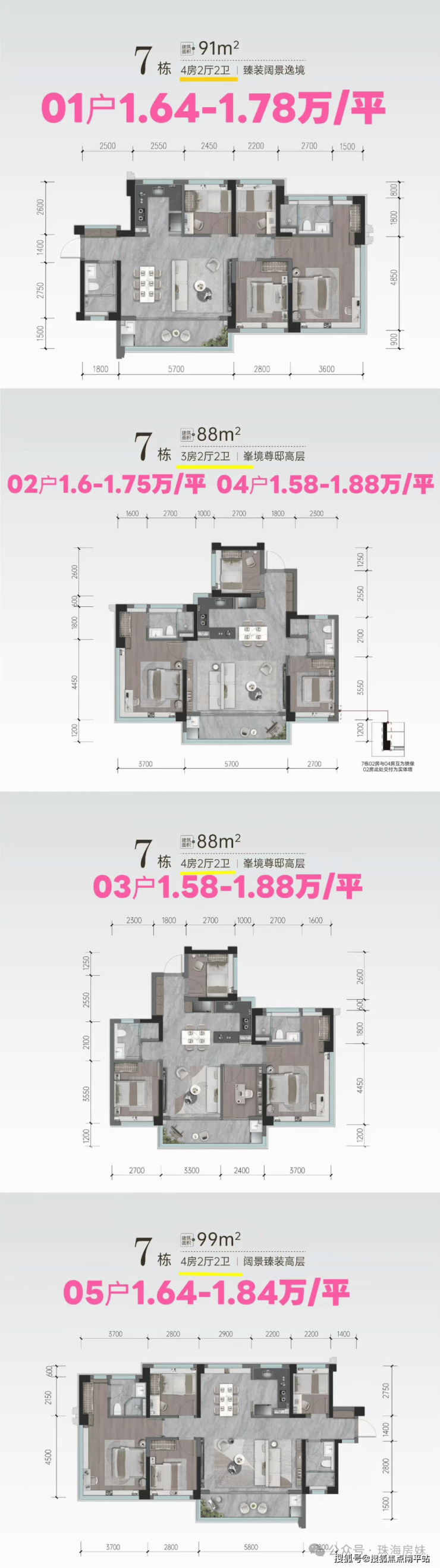 99m²四房两厅两卫、91m²四房 、88m²四房/三房