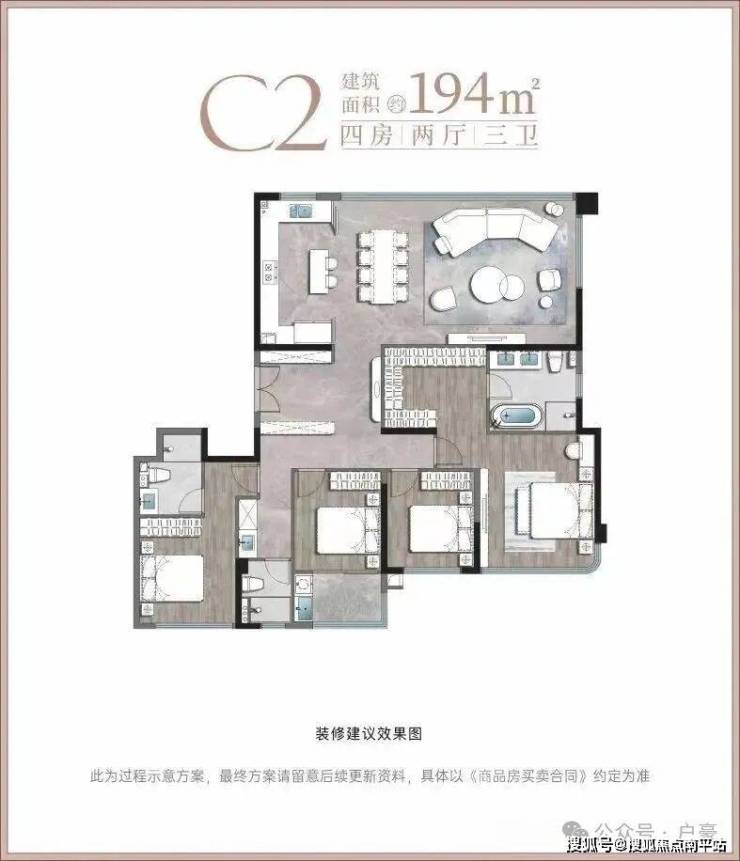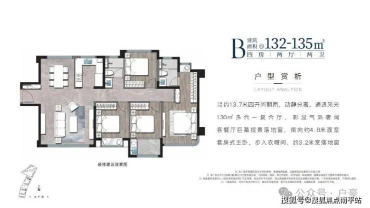 四居室113-194㎡ 南向5开间朝南,零浪费空间(如115㎡四房),全明格局,主卧飘窗 ;