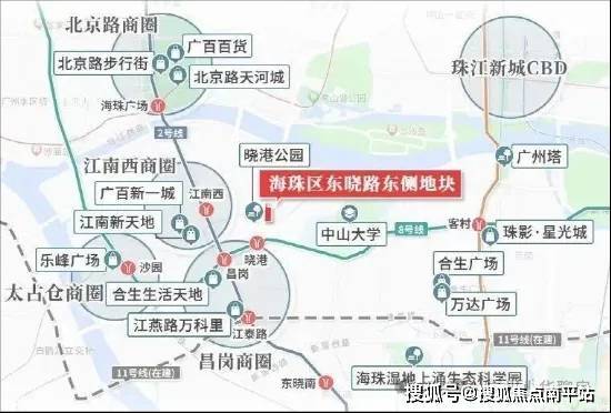 三地铁交汇,项目距离晓港地铁站仅约600米(数据来源:百度地图)