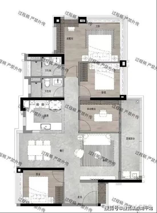 产品上,户型将实现3个“0”:0牺牲四房空间、0浪费连片体系化收纳,0遮挡主卧公园舱观景。