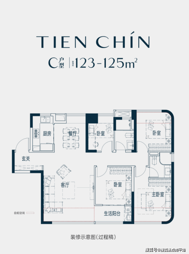 主力户型:110-112㎡、123-125㎡、144-150㎡、163㎡、186-189㎡、189-192㎡、199㎡七种户型
