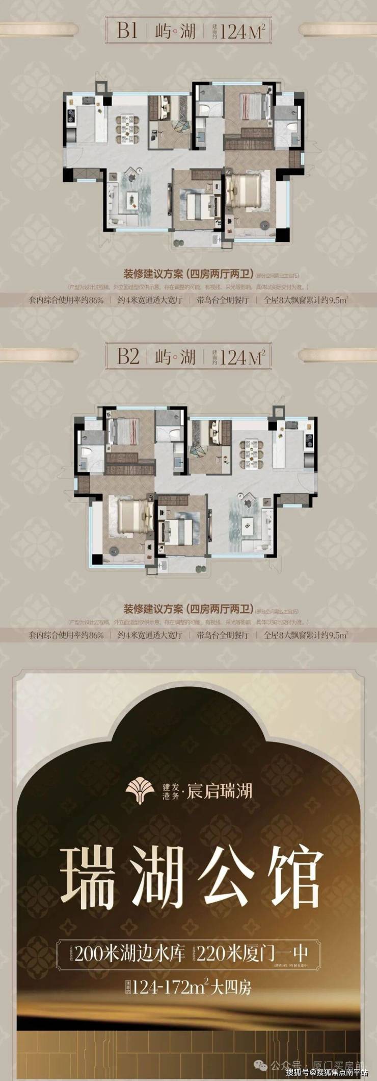 瑞湖公馆 :建面约96㎡三房、124-167㎡四房,适合城市精英改善型需求。