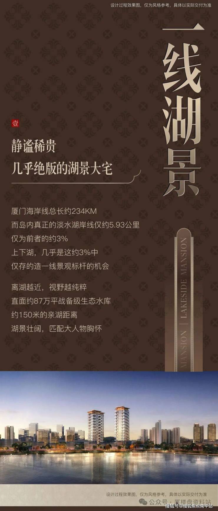 厦门建发宸启瑞湖是位于湖里区湖边水库板块的高端住宅项目,由建发房产与港务地产联合开发,定位为第四代住宅标杆,主打一线湖景资源与海派东方建筑风格。