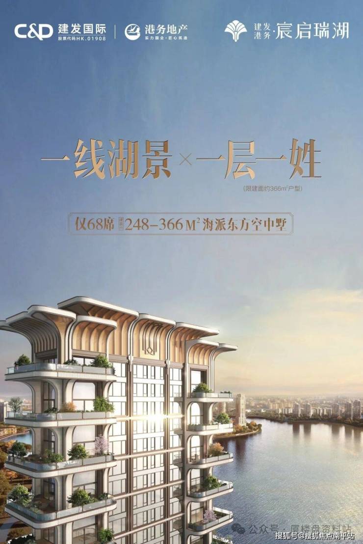宸启瑞湖 :建面约244-366㎡大平层,主打“空中墅”概念,配备约30-100㎡空中庭院,部分户型实现约6.5-6.8米挑高客厅,视野开阔,可直瞰湖景。