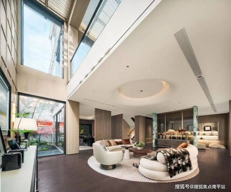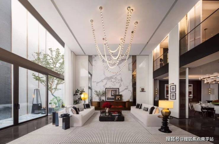 层高3.3米,约6.6米的双层挑高客厅,纵向空间的延伸不仅大幅提升室内采光与通风效果,更赋予空间轩昂气韵,匹配名门家族的开阔心境与雍容气度。采用通高的落地玻璃幕墙,赋予极致的景观视野体验。