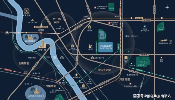 1️⃣交通:城市级配套,5-10分钟可达天津站后广场、小白楼、五大道、河东万爱商圈等,享受城市高端资源