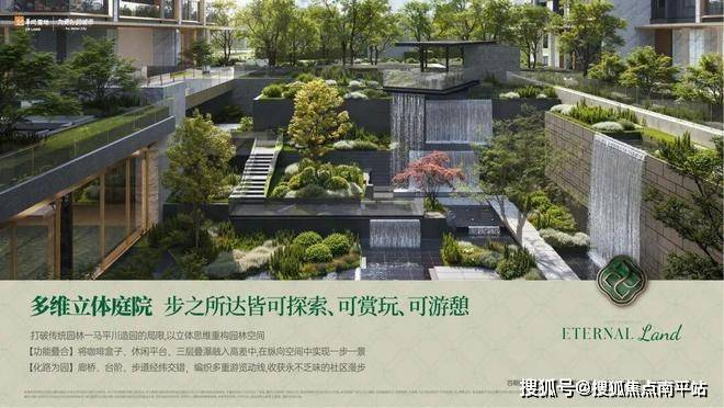 深入园区,多维立体庭院已实景呈现:叠瀑水景潺潺流动,立体高差营造出层次丰富的视觉感受;咖啡盒子、观景看台等休闲点位错落分布,不再是效果图上的想象,而是可触摸、可休憩的真实空间。廊桥与步道融入美学设计,每一步都成风景。